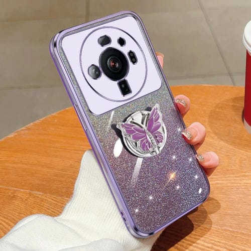 Para Xiaomi 12S Funda para Teléfono de TPU con Soporte de Mariposa con Brillo Degradado Ultra Plateado (Púrpura)