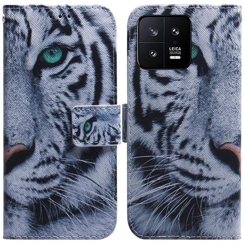 Para Xiaomi 13 5G Estuche de Teléfono de Cuero con Tapa de Dibujo Coloreado (Tigre)