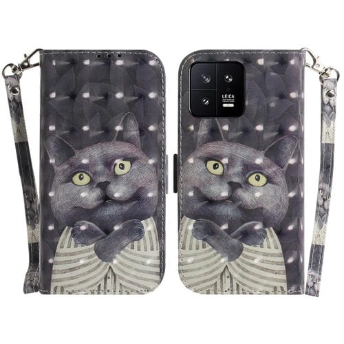 Para Xiaomi 13 5G Estuche de Teléfono de Cuero con Tapa Horizontal de Color 3D (Hug Cat)