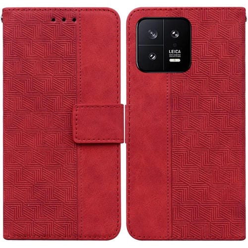 Para Xiaomi 13 5G Funda de Teléfono de Cuero con Relieve Geométrico (Rojo)