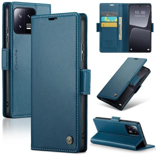 Para Xiaomi 13 Caseme 023 Mariposa Hebilla Litchi Textura Rfid Funda de Cuero Antirrobo para Teléfono (Azul)