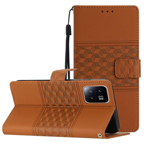 Para Xiaomi 13 Diamond Relieve Skin Feel Funda de Cuero para Teléfono con Cordón (Marrón)