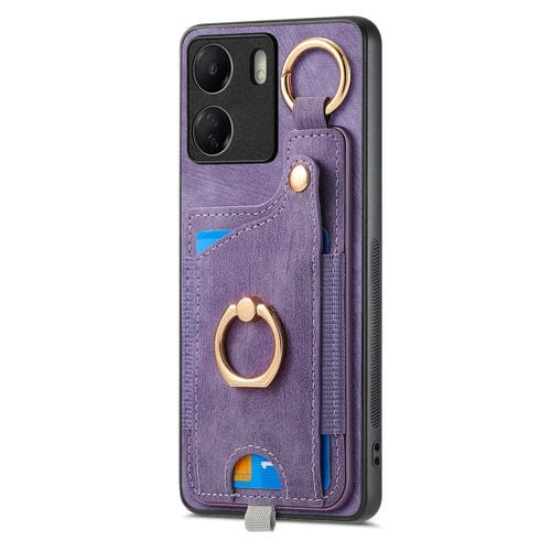 Para Xiaomi 13 Lite Funda para Teléfono con Bolsa para Tarjeta con Anillo y Sensación de Piel Retro con Lazo para Colgar (Púrpura)