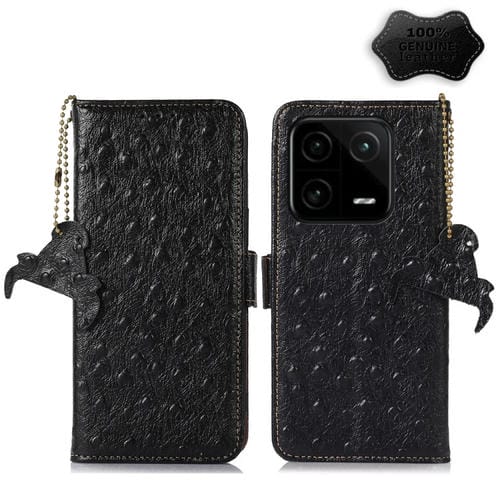 Para Xiaomi 13 Patrón de Avestruz Funda de Teléfono Rfid de Cuero Genuino (Negro)