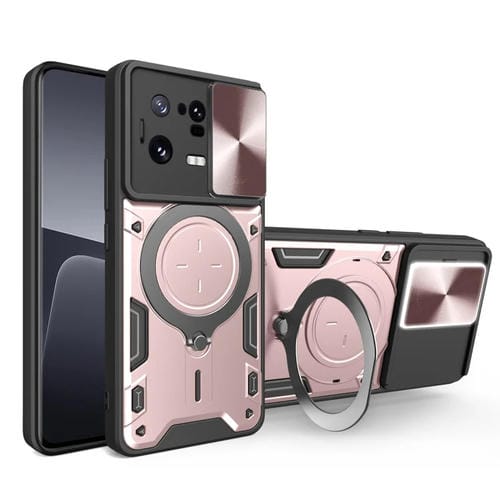 Para Xiaomi 13 Pro Cd Textura Deslizante Camshield Soporte Magnético Funda para Teléfono (Rosa)