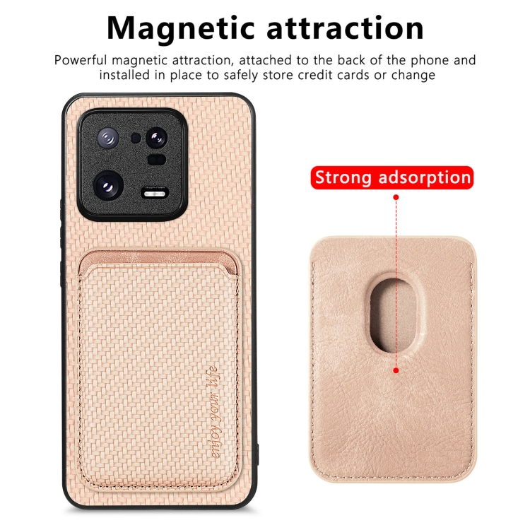 Para Xiaomi 13 Pro Funda de Teléfono con Tarjeta de Cuero de Fibra de Carbono Magsafe (Caqui)