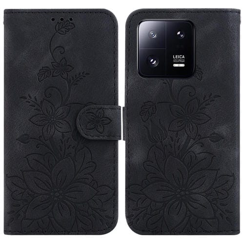 Para Xiaomi 13 Pro Lily Funda de Teléfono de Cuero En Relieve (Negro)
