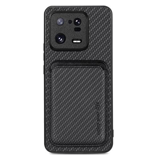 Para Xiaomi 13 Pro Tarjeta de Cuero de Fibra de Carbono Magsafe Phone Case (Negro)