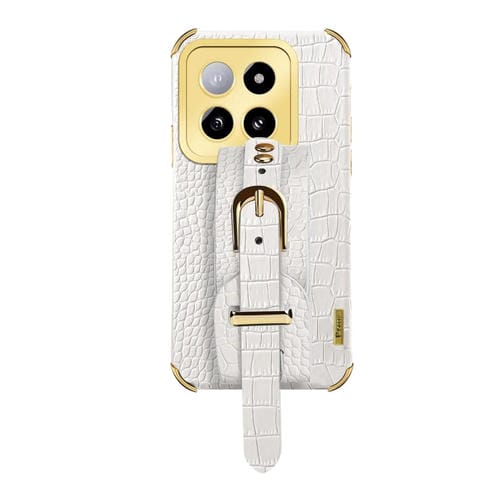 Para Xiaomi 14 Correa De Muñeca Galvanizada Funda Trasera De Cuero De Cocodrilo (Blanco)