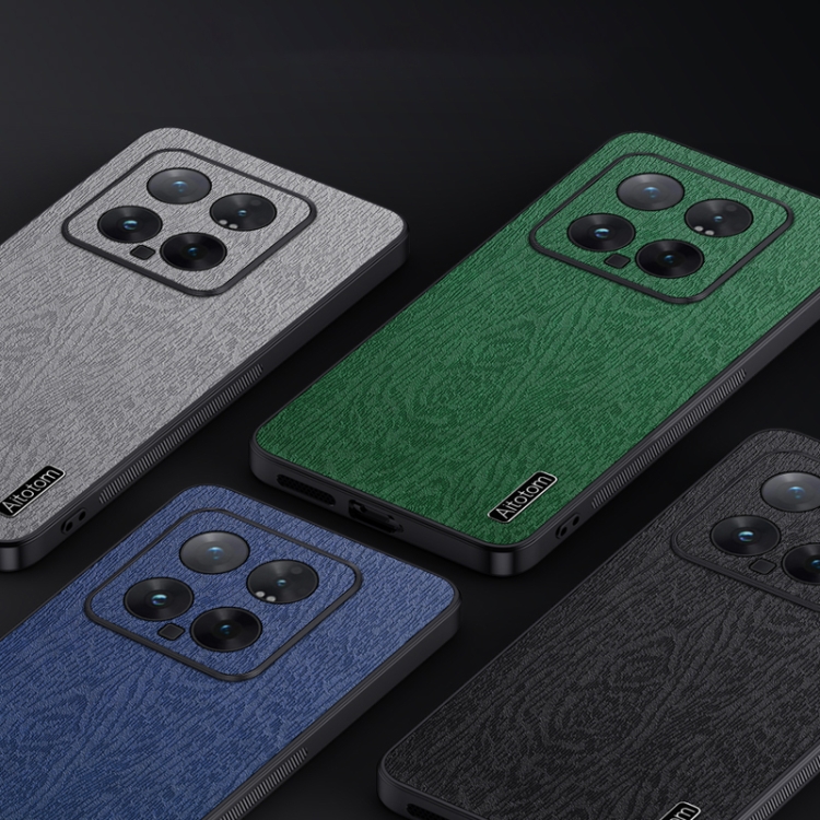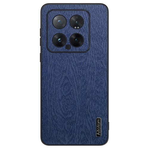 Para Xiaomi 14 Funda De Teléfono A Prueba De Golpes De Cuero Con Corteza De Árbol (Azul)