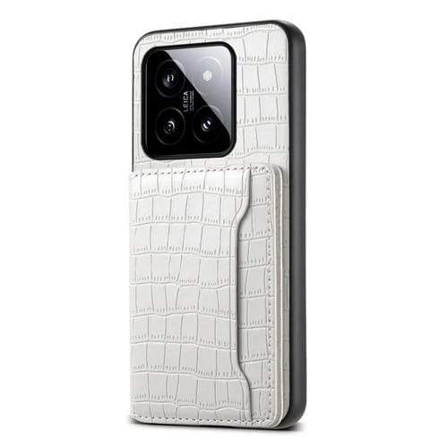 Para Xiaomi 14 Funda Para Teléfono Con Diseño De Bolsa De Tarjeta Con Textura De Cocodrilo (Blanco)