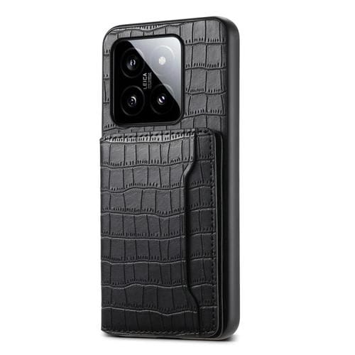 Para Xiaomi 14 Funda Para Teléfono Con Diseño De Bolsa De Tarjeta Con Textura De Cocodrilo (Negro)