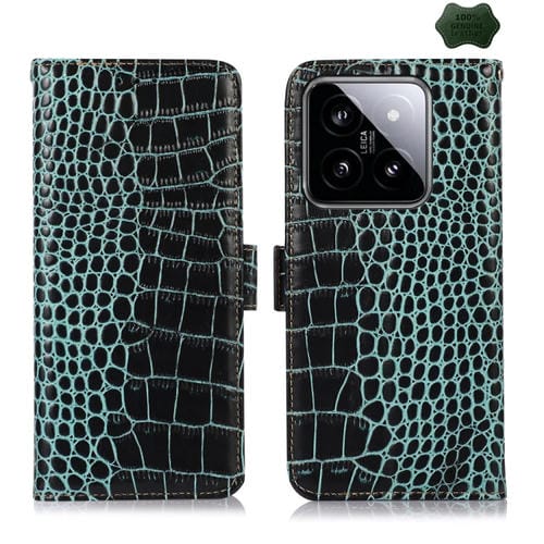 Para Xiaomi 14 Funda Para Teléfono De Cuero De Vaca Con Capa Superior De Cocodrilo (Verde)