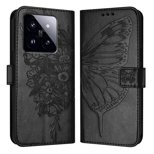 Para Xiaomi 14 Pro 5G Funda De Teléfono De Cuero Con Mariposa En Relieve Global (Negro)