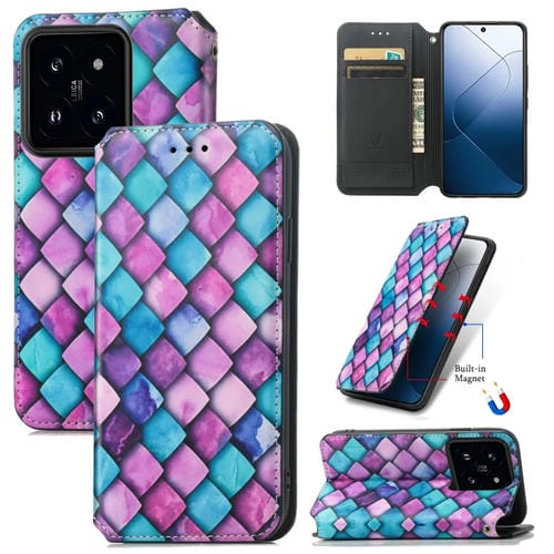 Para Xiaomi 14 Pro Caseneo Funda De Cuero Magnética Colorida Para Teléfono (Escamas Moradas)