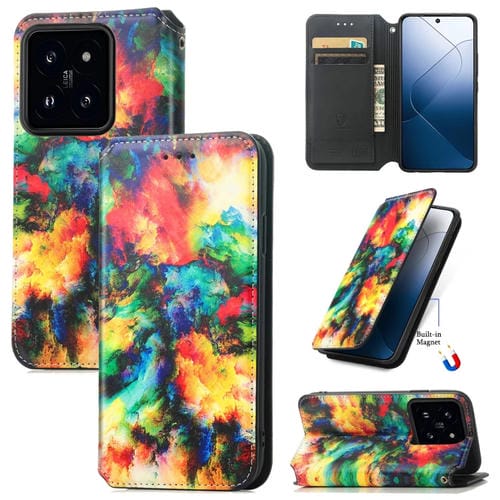 Para Xiaomi 14 Pro Caseneo Funda De Cuero Magnética Colorida Para Teléfono (Nube Colorida)