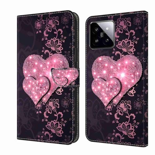Para Xiaomi 14 Pro Crystal 3D Funda Protectora De Cuero Para Teléfono A Prueba De Golpes (Lace Love)