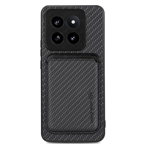 Para Xiaomi 14 Pro Funda Magnética Para Teléfono Con Tarjeta De Cuero De Fibra De Carbono (Negro)