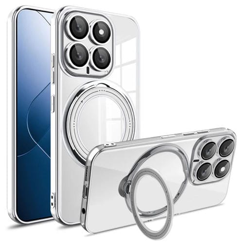 Para Xiaomi 14 Pro Galvanoplastia Magsafe Soporte De Rotación De 360 Grados Funda Para Teléfono A Prueba De Golpes (Plata)