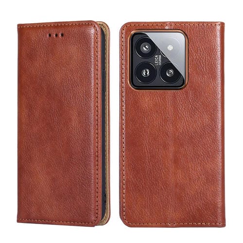 Para Xiaomi 14 Pro Gloss Oil Color Sólido Funda De Teléfono De Cuero Magnético (Marrón)