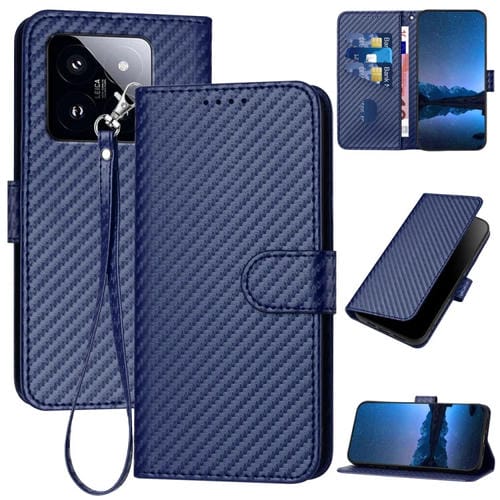 Para Xiaomi 14 Pro Yx0070 Funda De Cuero Con Hebilla De Fibra De Carbono Y Cordón (Azul Real)