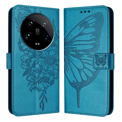 Para Xiaomi 14 Ultra 5G Funda De Teléfono De Cuero Con Mariposa En Relieve Global (Azul)