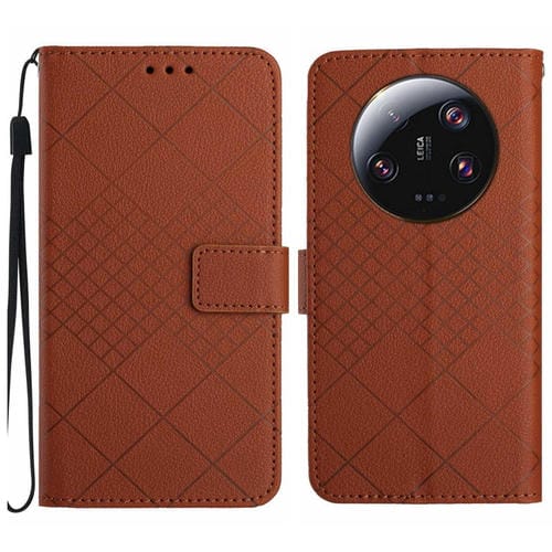 Para Xiaomi 14 Ultra Rhombic Grid Texture Funda De Cuero Para Teléfono (Marrón)