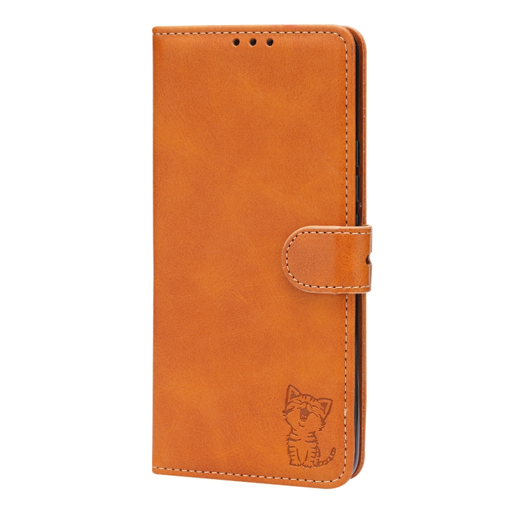 Para Xiaomi Mi 11 Estampado de Gatos Felices En Relieve Caja de Cuero Horizontal con Soporte y Tragamonedas y Billetera (Amarillo)