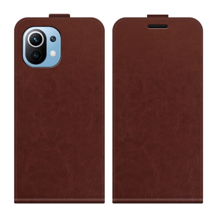 Para Xiaomi Mi 11 Lite R64 Textura de Una Sola Estuche Protector de Cuero Vertical de la Textura con Tragamonedas y Marco de Fotos (Marrón)