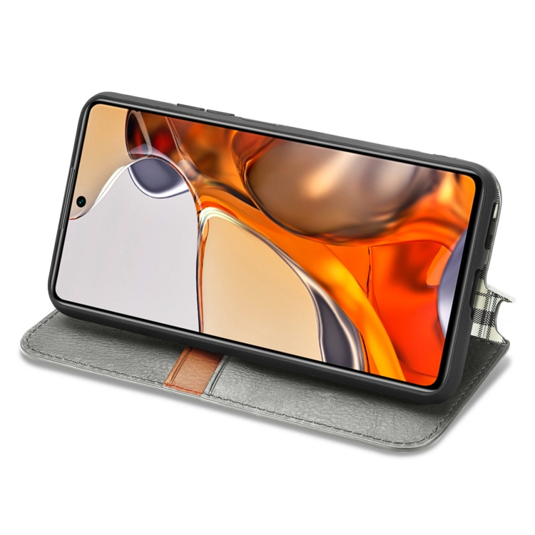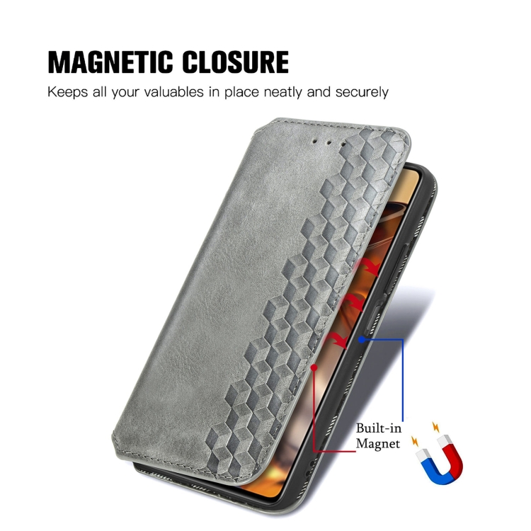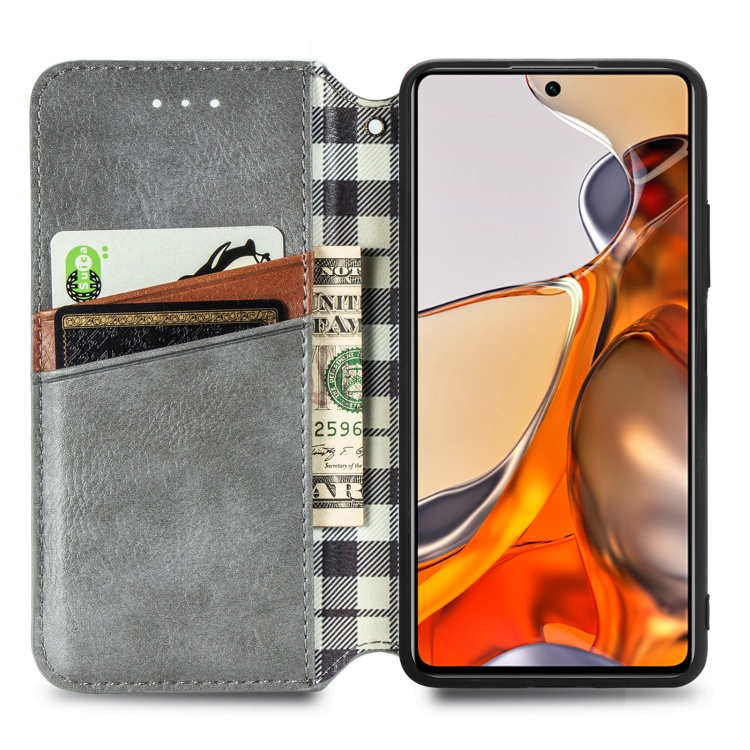 Para Xiaomi Mi 11T / Mi 11T Pro Cubic Priente Pulse Tipo Horizontal Funda Magnética con Soporte y Tragamonedas y Billetera (Gris)