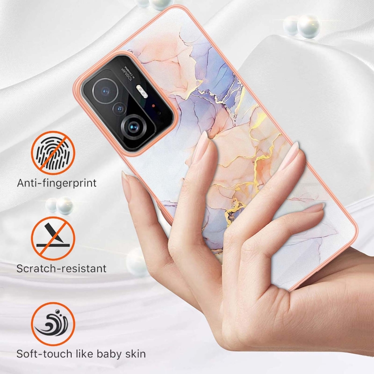 Para Xiaomi Mi 11T / Mi 11T Pro Gallo Electrochlating Imd TPU Caja del Teléfono (Mármol Blanco)