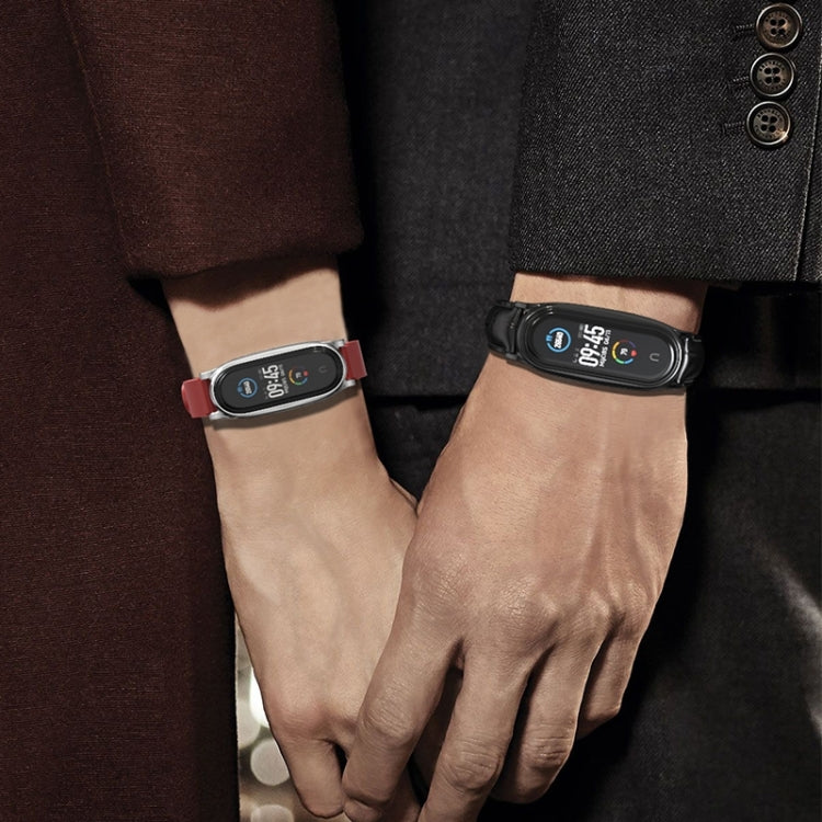 Para Xiaomi Mi Band 6/5/4/3 Mijobs Metal Case Crazy Horse Texture PU Microfibra Plus Watch Band (plata blanca)