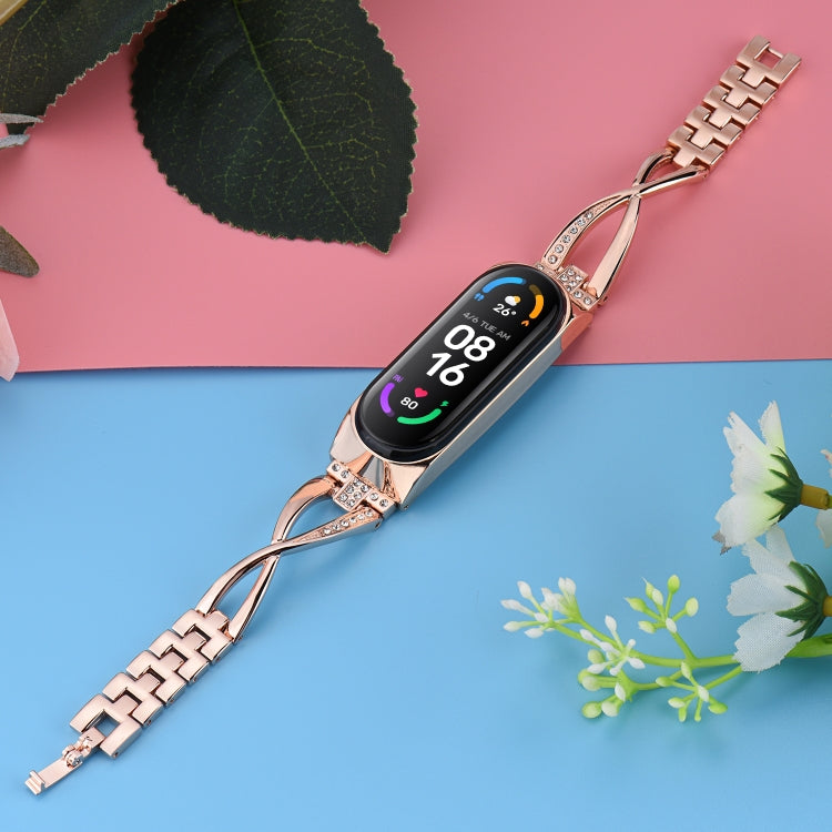 Para Xiaomi Mi Band 6/5 Band de Aleación de aleación de diamantes en forma de X (oro rosa)