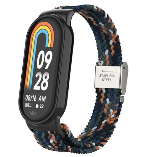 Cabeza de Metal + Correa de Reloj para Xiaomi Mi Band 8 con Hebilla de Acero y Nailon Ajustable (Denim)