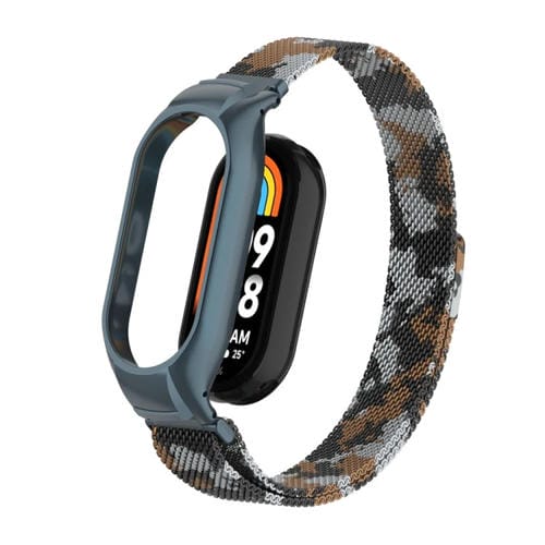 Caja de Metal Integrada + Banda Magnética Milanesa para Xiaomi Mi Band 8 (Marrón)