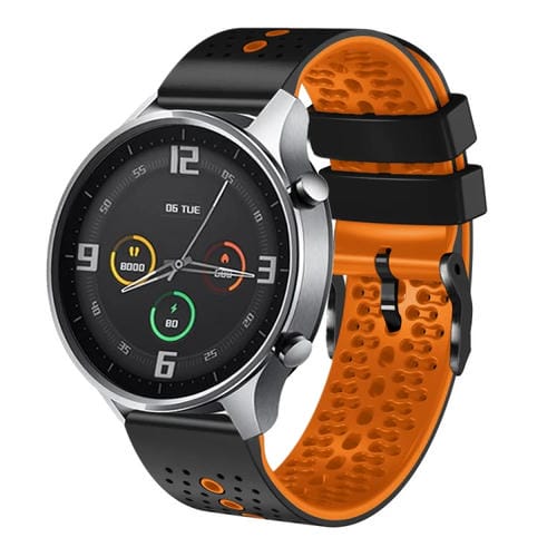 Banda de Reloj para Xiaomi Mi Watch Color 22mm Silicona Bicolor Perforada (Negro + Naranja)
