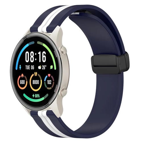 Correa de Reloj Xiaomi Mi Watch Sport 22mm Silicona Cierre Magnético Plegable (Azul Medianoche + Blanco)