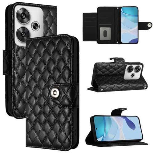 Para Xiaomi Poco F6 5G Funda para Teléfono de Cuero con Tapa con Textura Romboidal y Cordón (Negro)