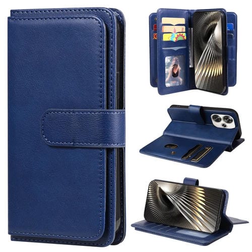 Para Xiaomi Poco F6 Cartera Multifunción 10 Ranuras para Tarjetas Funda de Cuero para Teléfono (Azul Oscuro)