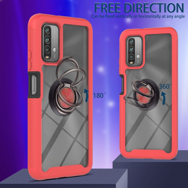 Para Xiaomi Poco M3 / Redmi Note 9 4G / Redmi 9 Power / Redmi 9T Starry Sky Sold Color Serie PC Africt PC + TPU Funda Protectora con Soporte de Anillo y Función Magnética (Rojo)