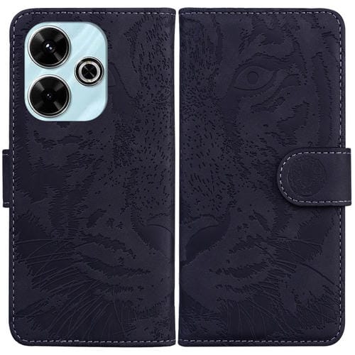 Para Xiaomi Poco M6 4G Tiger Embossed Pattern Funda de Cuero con Tapa para Teléfono (Negro)