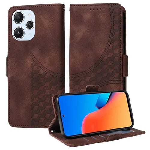 Para Xiaomi Poco M6 Pro 5G Funda para Teléfono de Cuero Estrellado con Rombos En Relieve (Marrón)