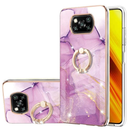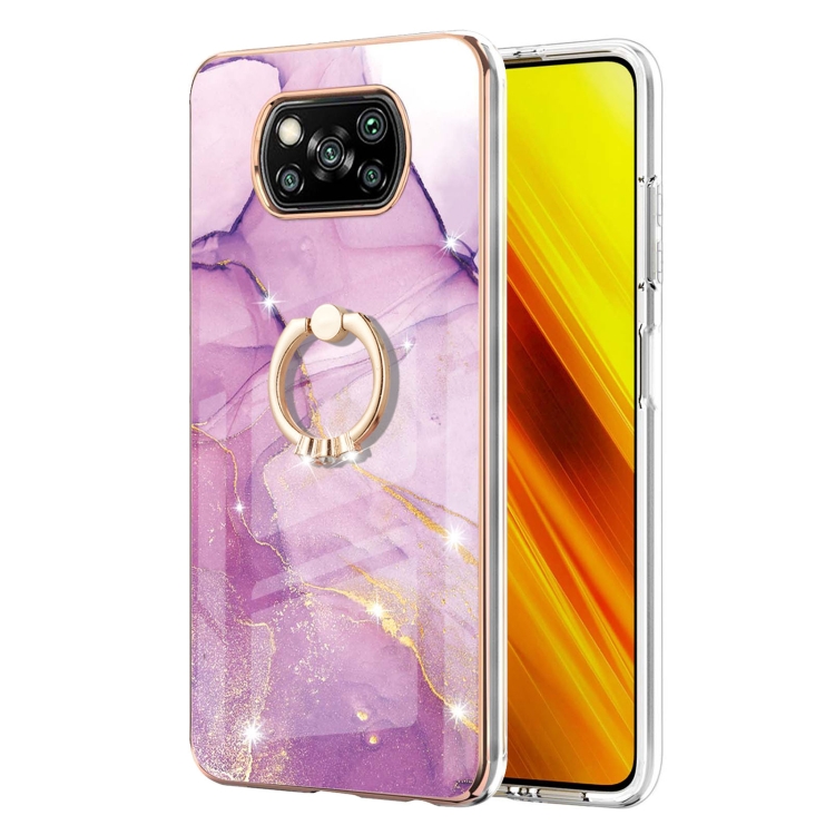 Para Xiaomi Poco X3 Nfc Patrón de Mármol de Electrochaplating Imd TPU Funda a Prueba de Golpes con Soporte de Anillo (Púrpura 001)