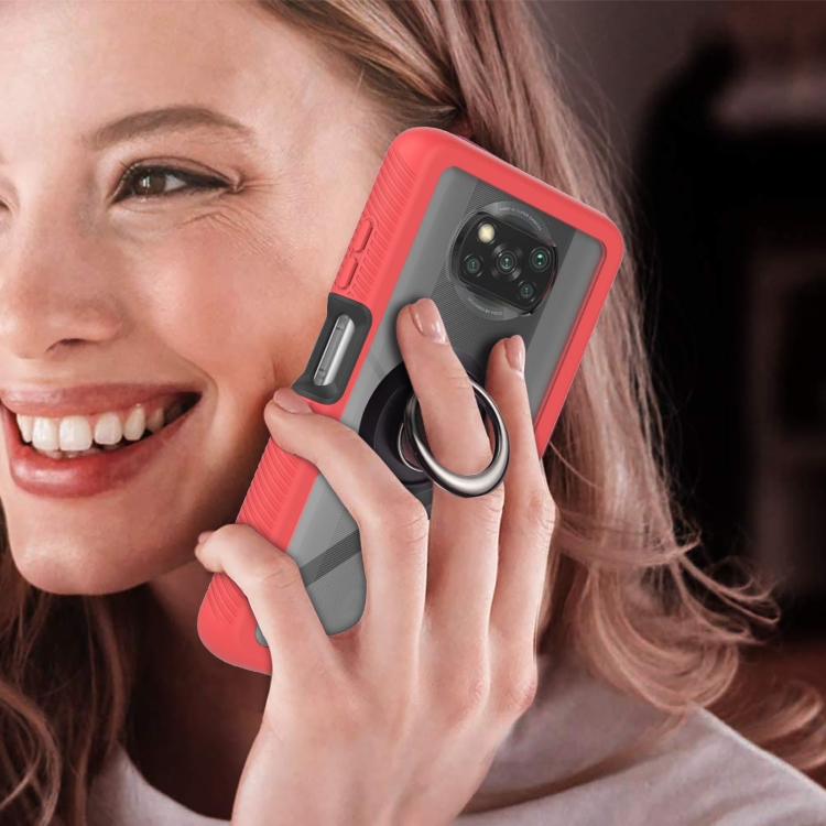 Para Xiaomi Poco X3 Nfc Starry Sky Color Solida Serie Aproximada PC + Funda Protectora TPU con Soporte de Anillo y Función Magnética (Rojo)