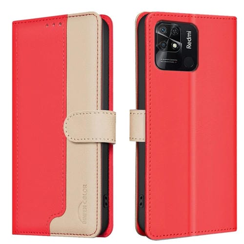 Para Xiaomi Redmi 10C Funda de Teléfono de Cuero Antirrobo Rfid a Juego de Colores (Rojo)