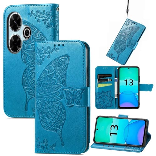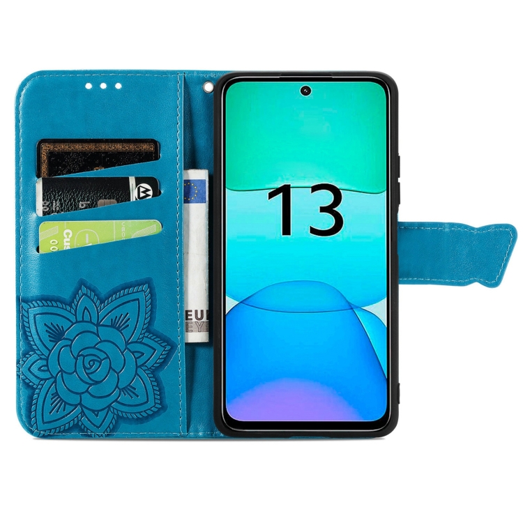 Para Xiaomi Redmi 13 4G Butterfly Love Flower Funda de Cuero para Teléfono En Relieve (Azul)