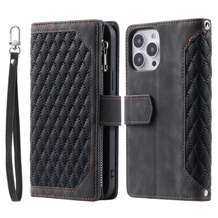 Para Xiaomi Redmi 13 4G Funda de Cuero con Cremallera y Textura de Rejilla con Cordón (Negro)
