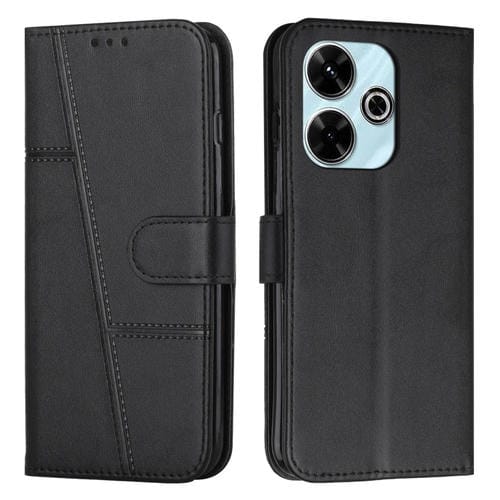 Para Xiaomi Redmi 13 4G Funda de Cuero con Hebilla y Textura de Becerro con Costura (Negro)