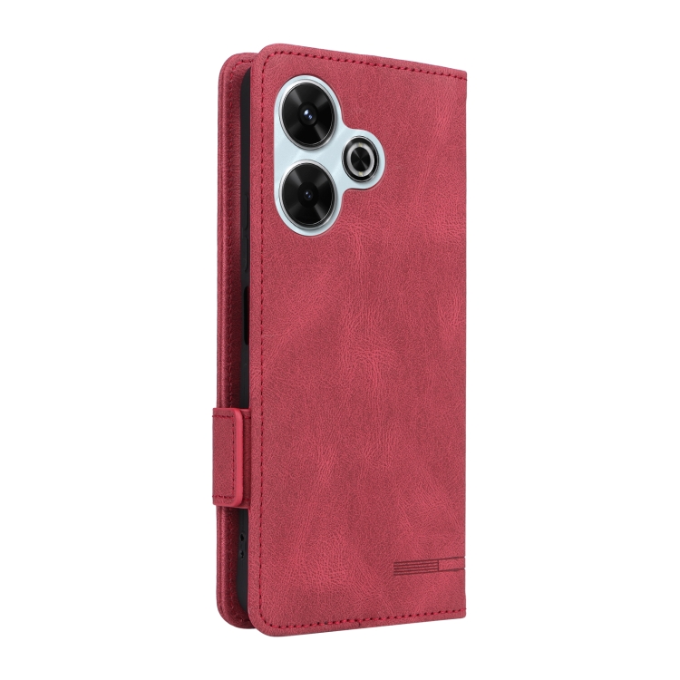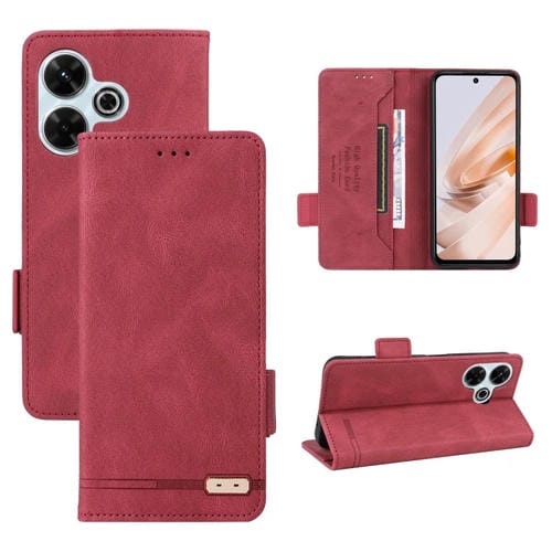 Para Xiaomi Redmi 13 4G Funda de Cuero para Teléfono con Cierre Magnético Global (Rojo)