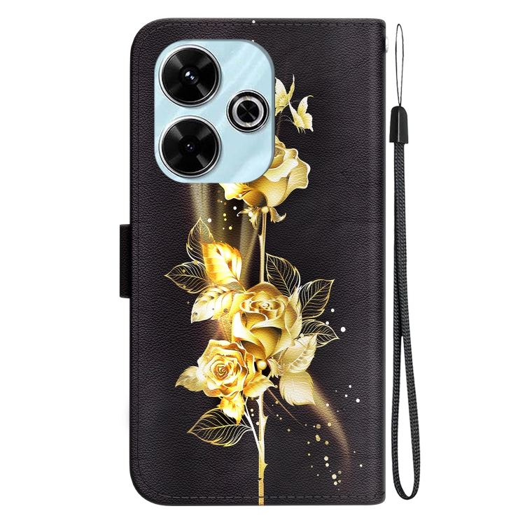 Para Xiaomi Redmi 13 4G Funda de Cuero para Teléfono con Dibujo Coloreado con Textura de Cristal (Mariposa Dorada Rosa)